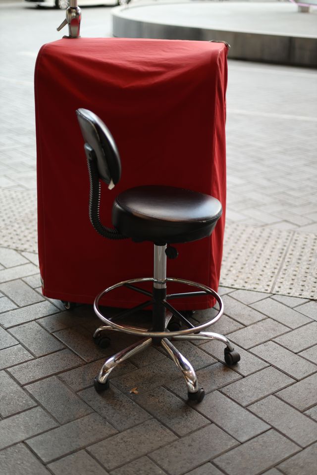 The valet attendant’s chair sits empty at Stanford Hospital. It’s 6:26 p.m. and the valet service is closed.